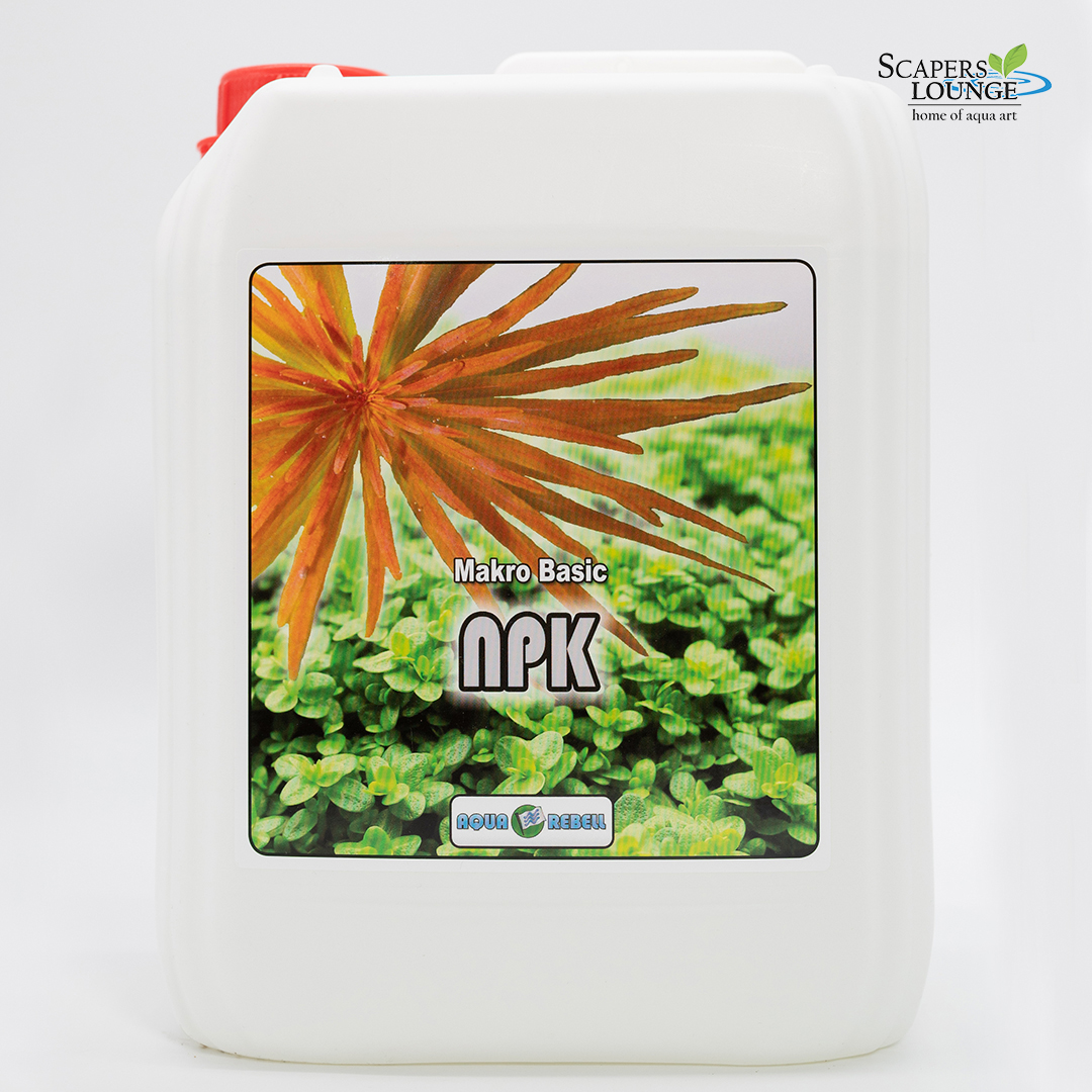 Eine Grundversorgung des Aquariums mit Makronährstoffen wird entweder über den NPK-Dünger, Estimative Index-Dünger oder über Einzelnährstoffdünger (Makro Basic Nitrat, Phosphat und Kalium) realisiert. Der Wasserpflanzendünger Aqua Rebell Makro Basic NPK führt dem Aquarium Nitrat, Phsophat, Kalium und Magnesium hinzu. Aqua Rebell Makro Basic NPK deckt folglich alle essentiellen Makronährstoffe ab und sorgt damit für einen gesunden Pflanzenwuchs. Der NPK- Dünger ist hierbei so konzipiert, dass sich keine hohen Nährstoffkonzentrationen im Aquarium anreichen können, grundlegend sollte aber auch nur so viel pro Tag dosiert werden wie an einem Tag von den Wasserpflanzen verbraucht wird. Die Dosierempfehlung ist ein sehr guter Ausgangspunkt für die individuelle Anpassung der Düngung an das eigene Aquarium. Gerade in Bezug auf die Makronährstoffdüngung ist eine gewisse Eigenleistung beim Ermitteln der passenden Dosis erforderlich, da der Makronährstoffeintrag durch Variablen wie den Fischbesatz und den Futtereintrag zusätzlich beeinflusst wird.