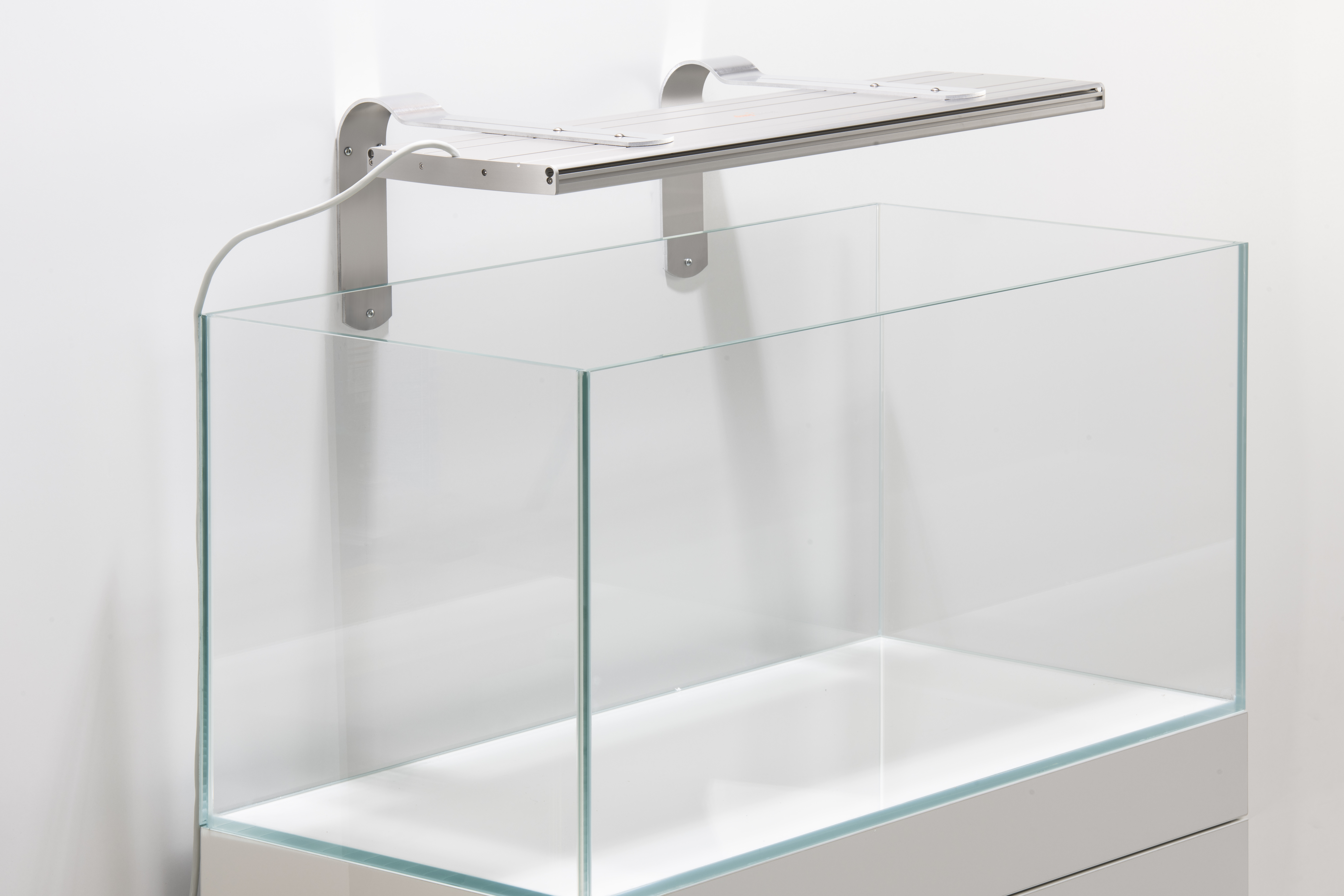 Befestigung von pendix Leuchten für wandnah stehende Aquarien bis zu einer Breite von 50cm